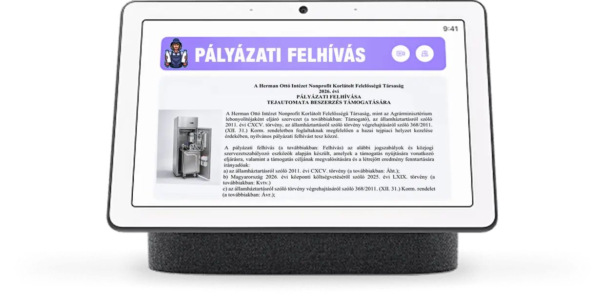 MEGJELENT A VÉGLEGES PÁLYÁZATI FELHÍVÁS A TEJAUTOMATA BESZERZÉS TÁMOGATÁSÁRA